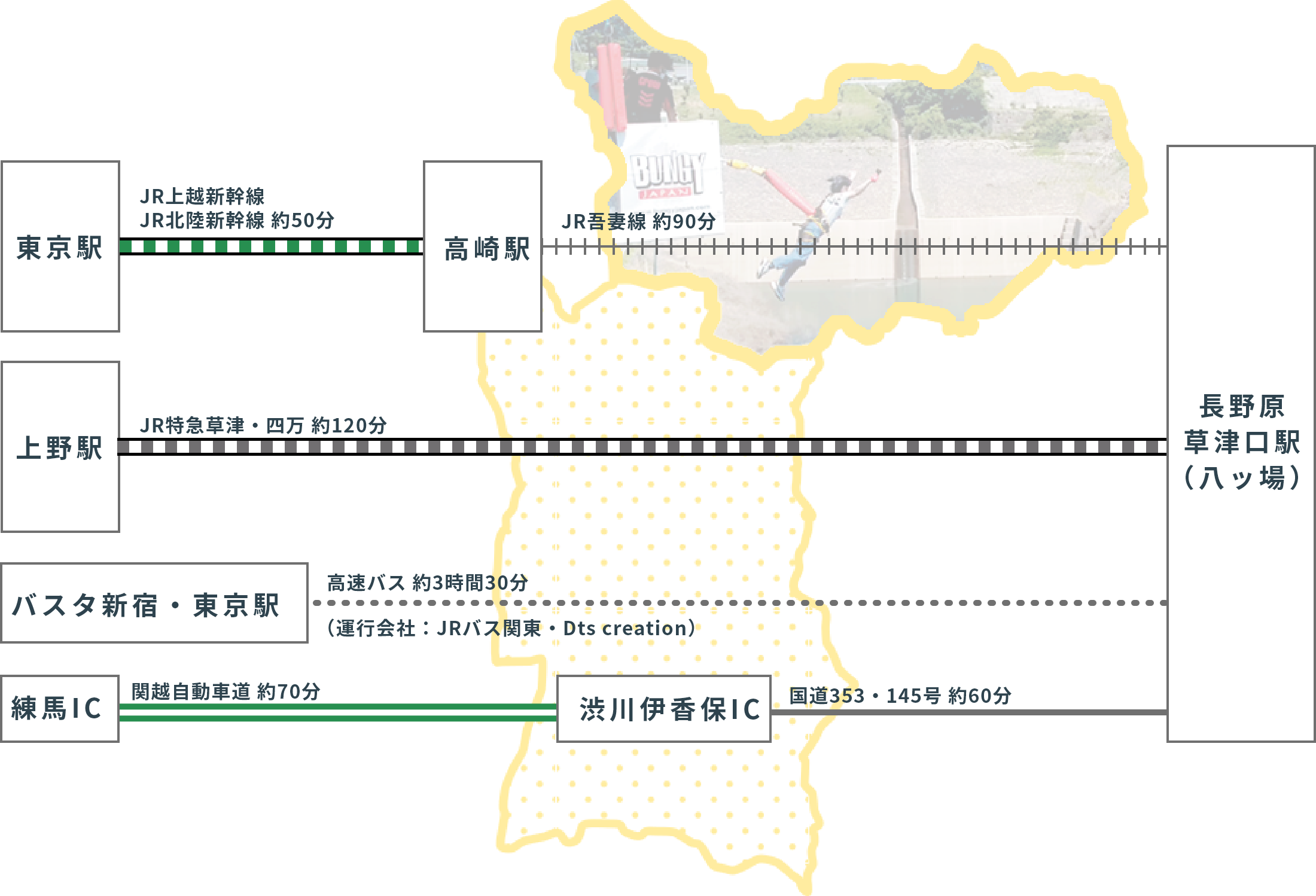 | (株)Dts creation 八ッ場ぐるりん | 時刻表・路線図はこちら | 0279-82-5596 | 群馬県吾妻郡長野原町長野原1295-32 |