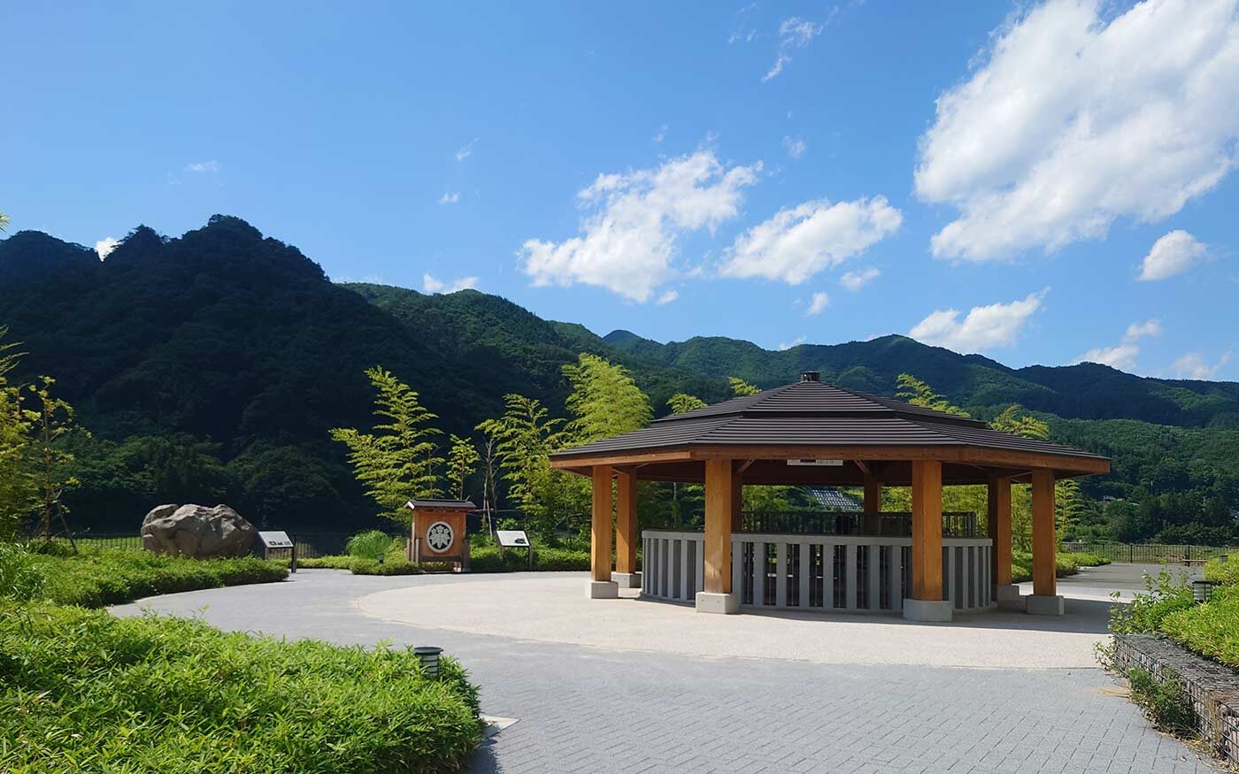 川原湯温泉のすべての温泉施設に配湯している源泉があります。残念ながら源泉そのものを見たり触ったりすることはできませんが、温泉地らしい硫黄のかおりに包まれながら周囲の景色を一望できます。水位が低い時期なら、旧川原湯温泉街の建物の基礎などが公園の間近に現れ、かつての姿に思いを馳せることも出来るかもしれません。