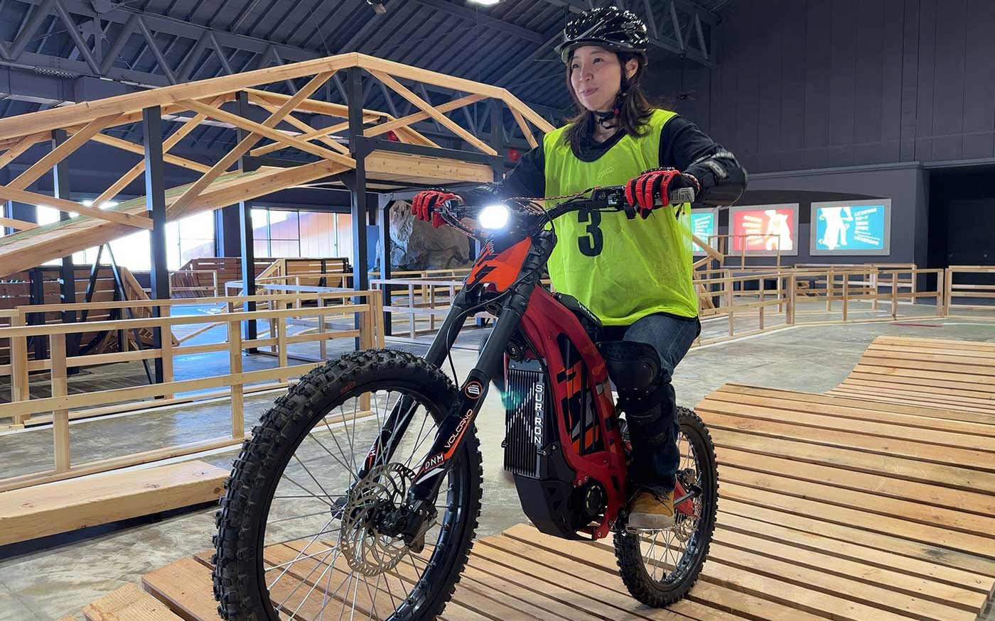 浅間山麓にオープンした新感覚屋内アクティビティ施設。電動バイクを駆ってアスレチックのようなコースを攻略していきます。バイクに乗ったことがなくても大丈夫!スタッフの方が丁寧にガイドしてくれます。電動バイクは16歳以上の方が対象ですが、小さいお子さんに向けに足漕ぎタイプのバイクが体験できるキッズエリアもご用意されています。