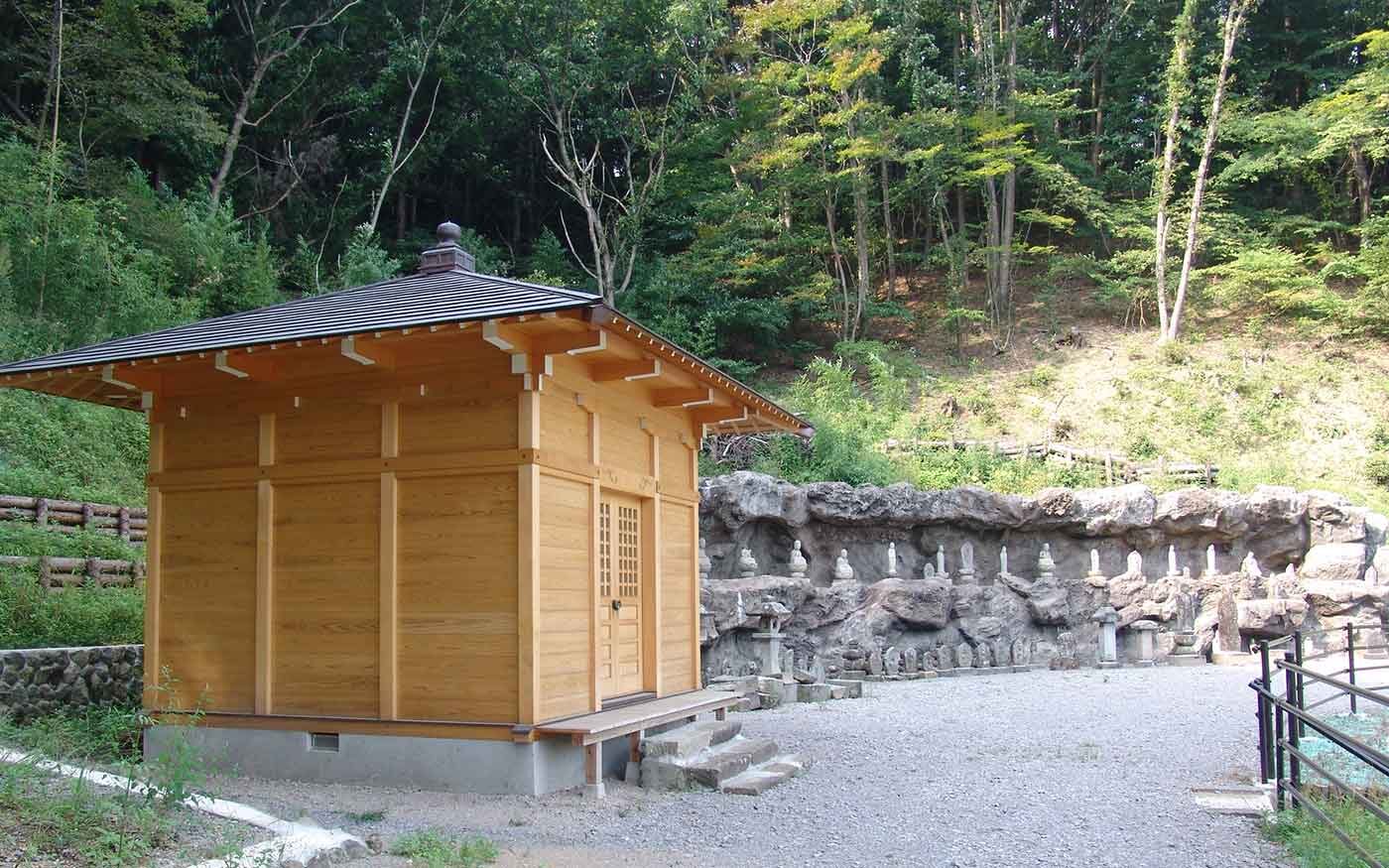 三ツ堂と呼ばれるお堂の右隣りに、江戸期を中心に作られた約70体の石仏が並べられている。