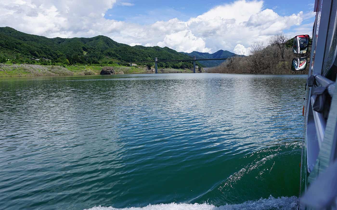 この「八ッ場にゃがてん号」に乗れば、普段は味わえない湖上からの視点で八ッ場ダムの雄大な堤体や、エメラルドグリーンの八ッ場あがつま湖、周囲の壮大な景観を心ゆくまで堪能できます。約40分間のコースでは、陸上走行と湖上クルーズの両方を楽しめ、八ッ場エリアの魅力を陸と水の両方から体感できるのが魅力です。