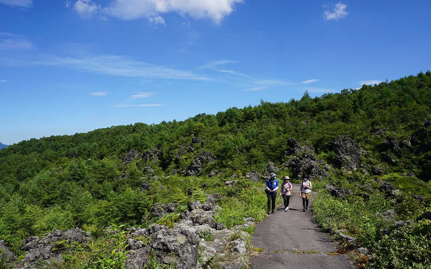 ここでは、約240年前の浅間山大噴火で流れ出た溶岩が作り出した、黒々とした奇岩群「鬼押出し」が広がるヴォルケーノウォーク(自然遊歩道)を散策できます。ゴツゴツと冷え固まった溶岩が織りなす独特の景観は圧巻で、自然の力強さと、そこに息づく高山植物の生命力を肌で感じられるでしょう。