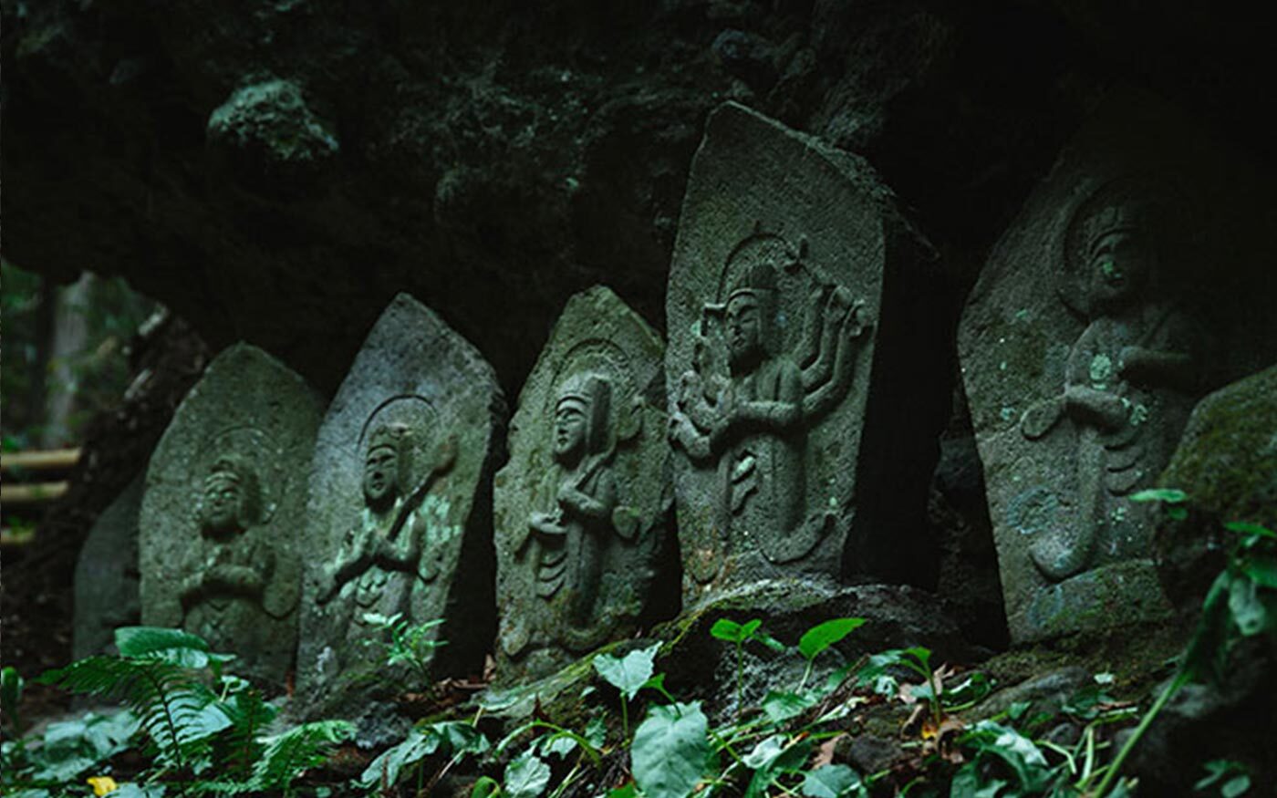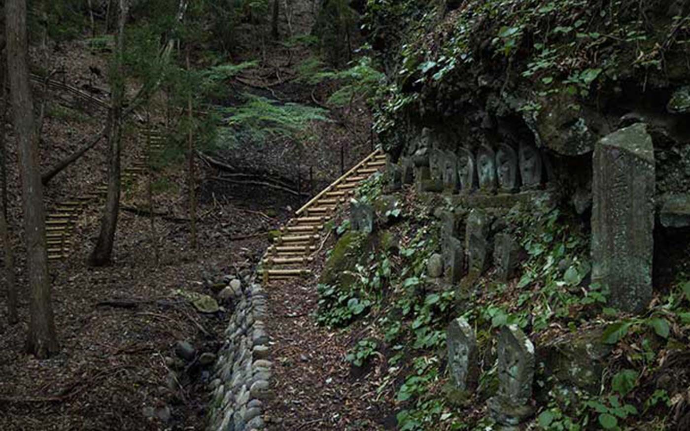 主に江戸時代中頃から終わりにかけて作られた約80体もの石仏群が、自然の地形を生かした岩棚や岩窟に並べられている。