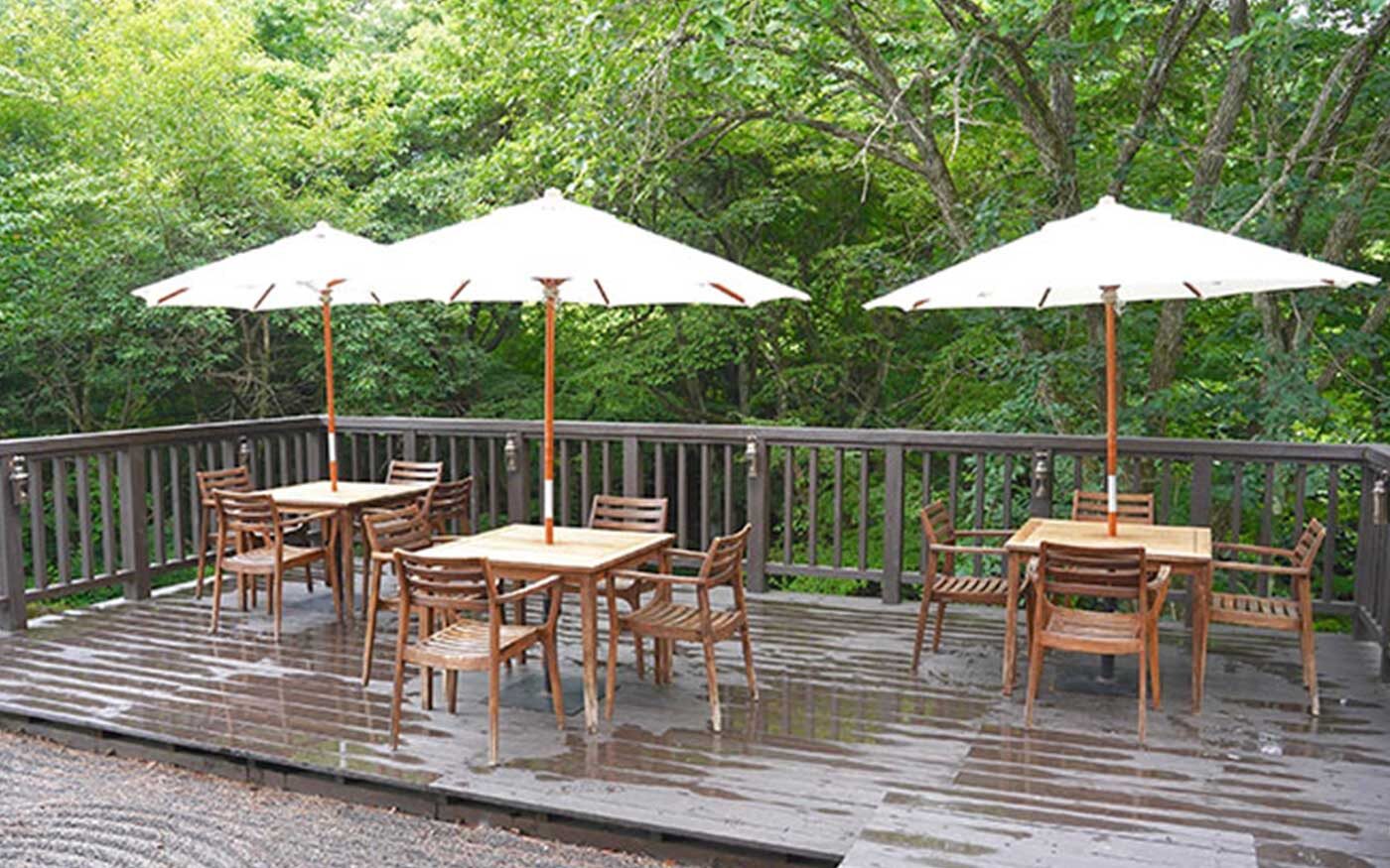 高さ約10m、幅約30mの壮大な滝で、滝壺間近でその迫力を体感できます。高原リゾートの涼しげムードにぴったりなスポットです。